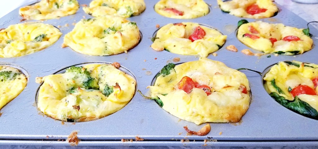 Think of these as mini quiches, it’s a quick and easy recipe and a good gluten-free option since it has no crust. (make sure all ingredients used are gluten-free).