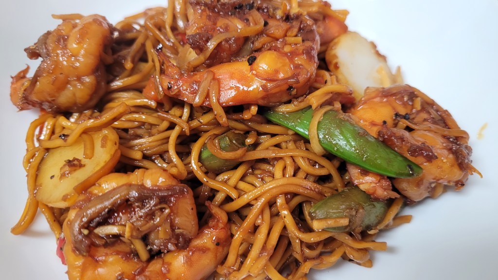 Since Walmart was the main store of choice, I decided to grab items for Chow Mein.  I’m just putting this out there, this is by no means an authentic chow mein lol, this is chow mein on a budget lol. Noodles, shrimp and veggies lol. I was able to get garlic for seasoning (garlic is my thing now lol) with soy sauce, shrimp, chow mien noodles and stir fry frozen veggies. The soy sauce really sold me on the look and taste of my meal. It was a super fine dark soy sauce which is rich (strong, so a little goes a long way). Although I am not a fan of frozen veggies like I said, they did what was needed for this meal. The meal was yummy and very filling.