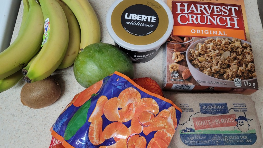 I went to the Real Canadian Superstore and got a few items for breakfast and lunch/dinner. For breakfast I was able to grab a few fruits like banana, kiwi, mango, and mandarins because you know I love my fruits and I got eggs, yogurt, and cereal as well. I try my best to get as much fruits as possible because like I said before that’s all I care about lol. I eat them as snacks, I can freeze them to make smoothies etc. I just want to have options. I made hard boiled eggs and had it with yogurt and cereal with fruit. It was simple and yummy. I spent $17.79 on ingredients to make this meal.