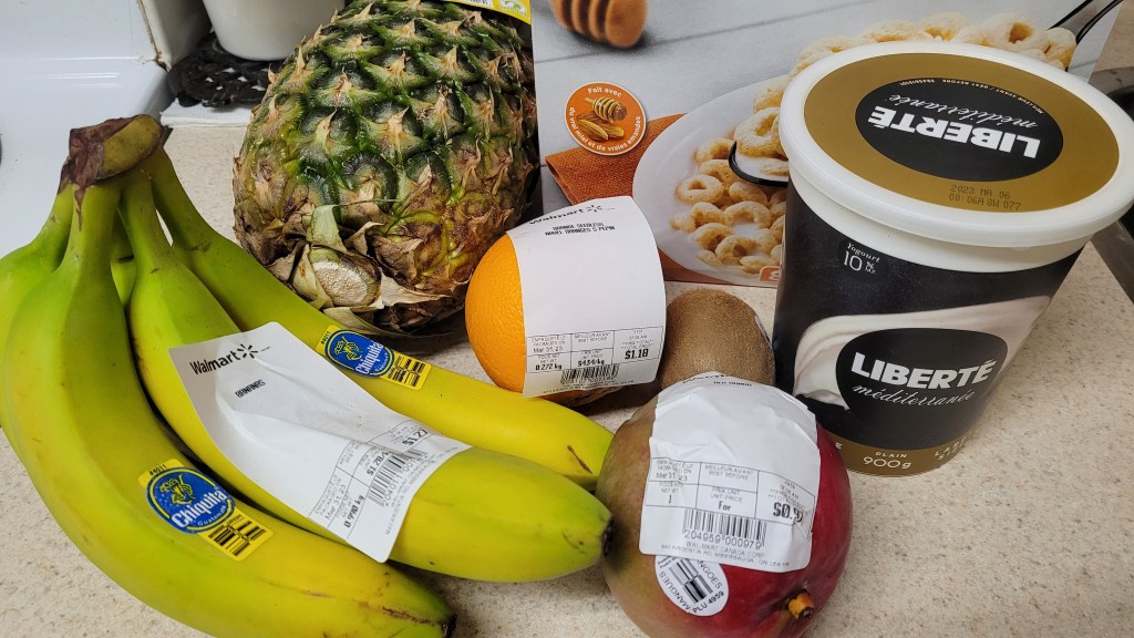While at Walmart I was able to grab items for breakfast. Honestly, I tend to double up my shopping trips at Walmart as sometimes I can get a few good things for my breakfast like cereal and yogurt. This trip was no different. If you know me then you know pineapple is life and I was able to grab me a delicious pineapple, some bananas, an orange, a kiwi, a mango, cereal, and my fav full fat Greek yogurt. Like always I made myself a quick fruit salad to go with my cereal and yogurt. It’s quick and simple. I eat as breakfast but also as snacks which is perfect for a person like me. The ingredients for this trip cost me $19.81.