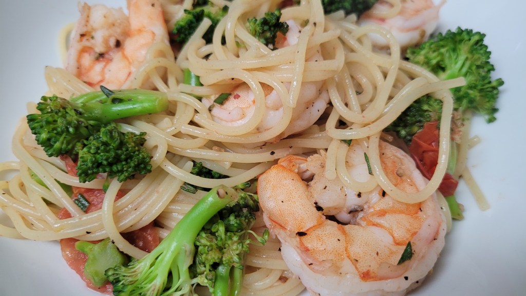 My first trip for the month was at Walmart. I wanted to make a shrimp pasta with flavor, not just salt and pepper lol. I mean salt and pepper are good but sometimes I need the added spice! I was able to purchase grape tomatoes, rosemary, garlic, broccoli (because broccoli is life lol), spaghettini pasta, and a bag of shrimp. Like I said in the past, I am usually able to get a decent bag of shrimp from Walmart for around $10. This was a yummy meal and quick to make. I spent $19.39 on ingredients to make this meal. I was able to get multiple servings from this meal but ultimately your serving portions really depends on how much or how little you eat.