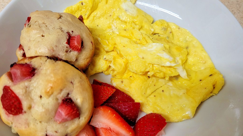 My final trip for May ended at No Frills supermarket, this was my sole breakfast trip, and it did not disappoint. This trip required a little more patience and imagination. I wanted to make breakfast muffins or pancakes for breakfast, yes, it’s easy to by the premade items, however I opted to making everything from scratch. Yes, it takes more time, but I have multi-use items. This trip I purchased flour, 2 bananas, strawberries, a small carton of cream, a packet of baking powder (I did not know they sold single packets until now), small packets for sugar (this I was really shocked it) and 12 eggs. With these ingredients you can make many different things such as loaf cakes, muffins, pancakes, fritters, and these can all be eaten for breakfast. I made butter from scratch and was able to use left over buttermilk for other uses. I made strawberry banana muffins with eggs for breakfast, but the possibilities were endless for sure as I had baking powder and sugar that were flavoured with vanilla. I was not mad at this trip. This trip cost me $19.90 on ingredients.