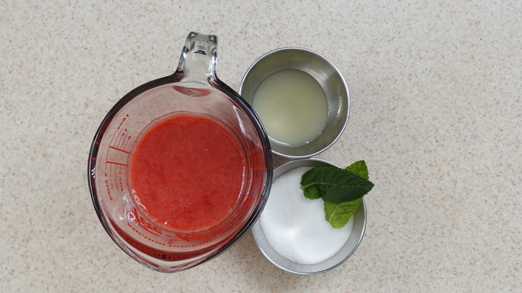 - Once puree is at a very smooth consistency add a tablespoon of sugar. Here you can use the sweetener of choice. I only had sugar so that is what I used. Sometimes strawberries can be super sweet which means you will use less sugar, but other times help is needed. You be the judge of that.