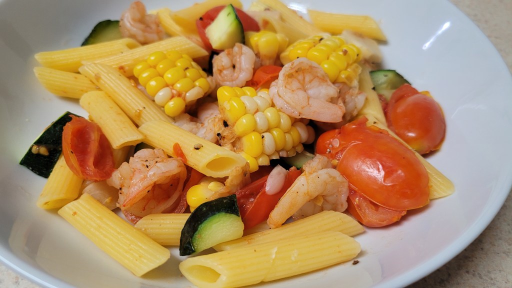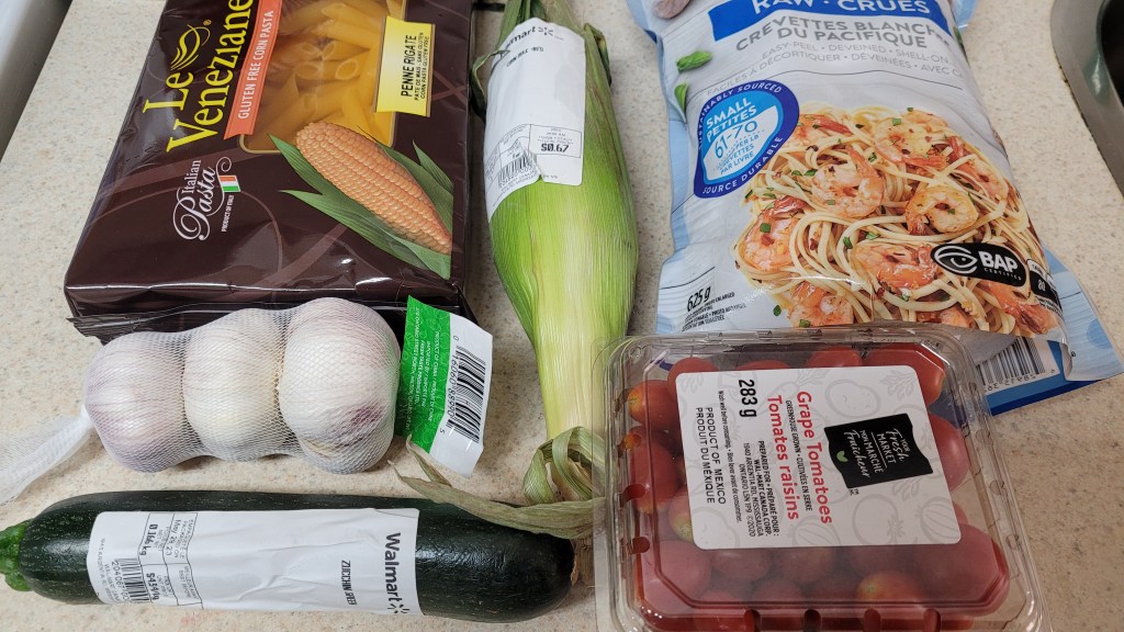 My next trip at Walmart cost me $19.27 and I was able to purchase six items to prepare for dinner. I was able to get shrimp of course, corn, garlic, grape tomatoes, zucchini, and gluten-free pasta which is made from corn. The meal itself was simple but I only cared for the shrimp and was able to create a delicious shrimp pasta. I know if I had purchased regular pasta, I would have had a few extra dollars to add something else to this meal however it was quite filling.  The shrimp I get from Walmart usually lasts me for the entire month which is why I will keep getting my shrimp here until I find a suitable alternative.