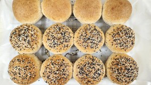 - Once rested, brush tops and sides of dough with water, sprinkle with your favourite toppings like chia seeds or everything seasoning.